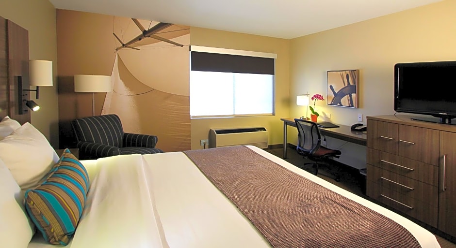 This king room offers a city view and features a nautical theme. Blackout shades offer added privacy.