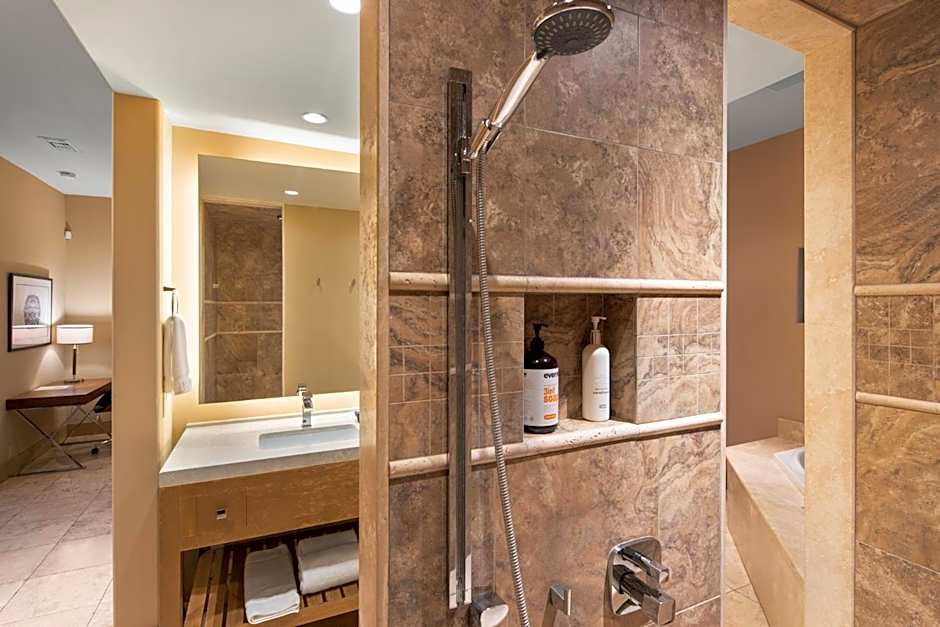 This suite's standout features are the pool with a view, hot tub and fireplace. Featuring a private entrance, this air-conditioned suite is consisted of of 1 living room, 1 separate bedroom and 1 bathroom with a walk-in shower and a bath. Boasting a terrace with pool views, this suite also offers a tea and coffee maker and a flat-screen TV with streaming services. The unit offers 1 bed.