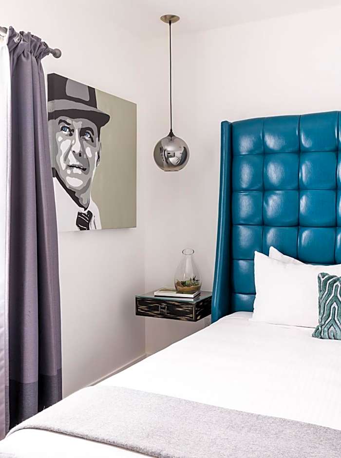 Featuring a private cabana, this deluxe room includes free WiFi. Styled in mid-century modern white on white decor, gray accents with pops of teal, purple or orange are featured in this room. A white vessel sink and a glass shower is featured in the private bathroom. Apple TV is included.
