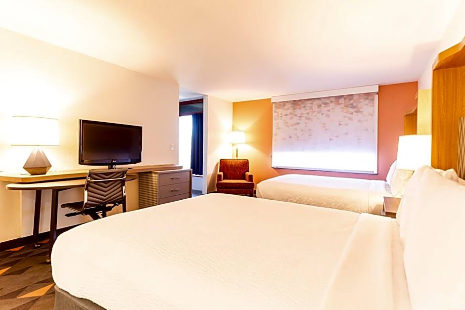 The Holiday Inn Rancho Cordova - Northeast Sacramento offers various types of rooms. These include Standard Rooms with double occupancy, King Rooms with either a bath tub or hearing accessible shower, and Queen Rooms with either two queen beds or an executive setup. All rooms have a size of 205 sqft and do not allow smoking. The accommodations range from 2 adults and 1 child to 4 adults and 3 children, depending on the room type.