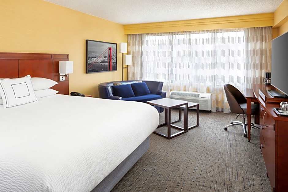 The Courtyard by Marriott Fisherman's Wharf offers a variety of room types. They include Queen Rooms with King size beds and sofa beds, accommodating 3 adults and 2 children. There are also Queen Rooms with Two Queen Beds for 4 adults and 3 children. Additionally, they have King Rooms with King size beds and sofa beds, accommodating 3 adults and 2 children. Smoking is not allowed in any of these rooms.