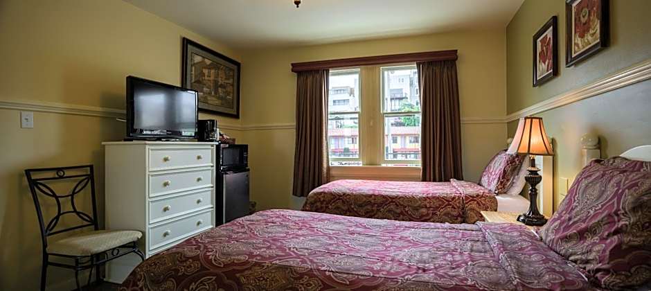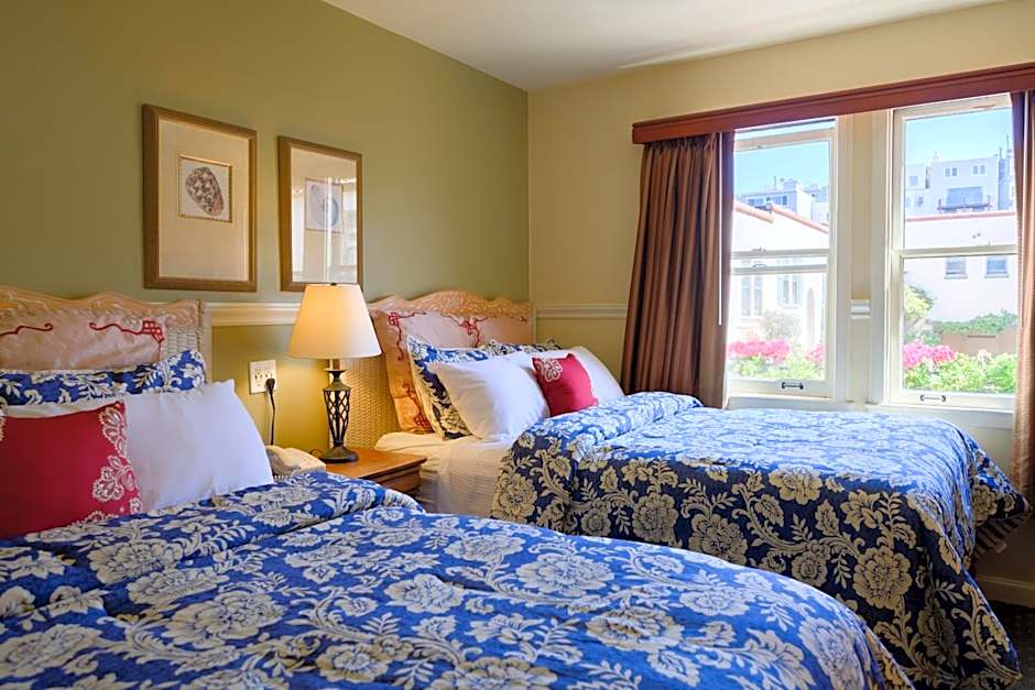 This room offers two separate sleeping areas: a larger front room facing Lombard Street with two twin beds, and a quieter, smaller back room with one queen bed. Amenities include a flat-screen TV, microwave, mini-fridge, and coffee maker. Ironing tools, extra blankets and pillows, and a fan are available in the closet for your comfort. Please note: Due to its location, this room is subject to significant street noise. Please consider this before booking. Pets are not allowed in this room type. Rooms with a street view incur heavy street noise. Please take this under advisement when booking this room type.