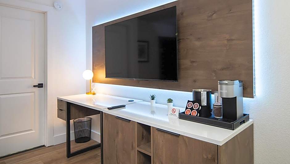 This air-conditioned room is ADA compliant and features a microwave and a tea/coffee maker. The bathroom is equipped with a roll-in shower and grab bars.