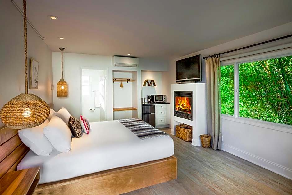 Guests will have a special experience as this double room offers a fireplace. The double room's kitchenette, which features a refrigerator and a microwave, is available for cooking and storing food. This air-conditioned double room includes a flat-screen TV with cable channels, a private bathroom as well as an outdoor dining area. The unit offers 1 bed.