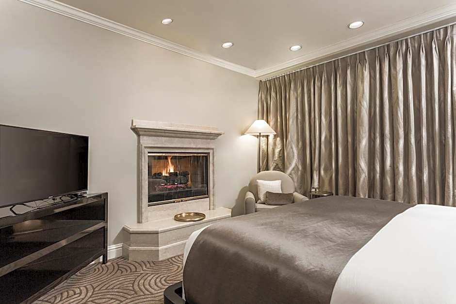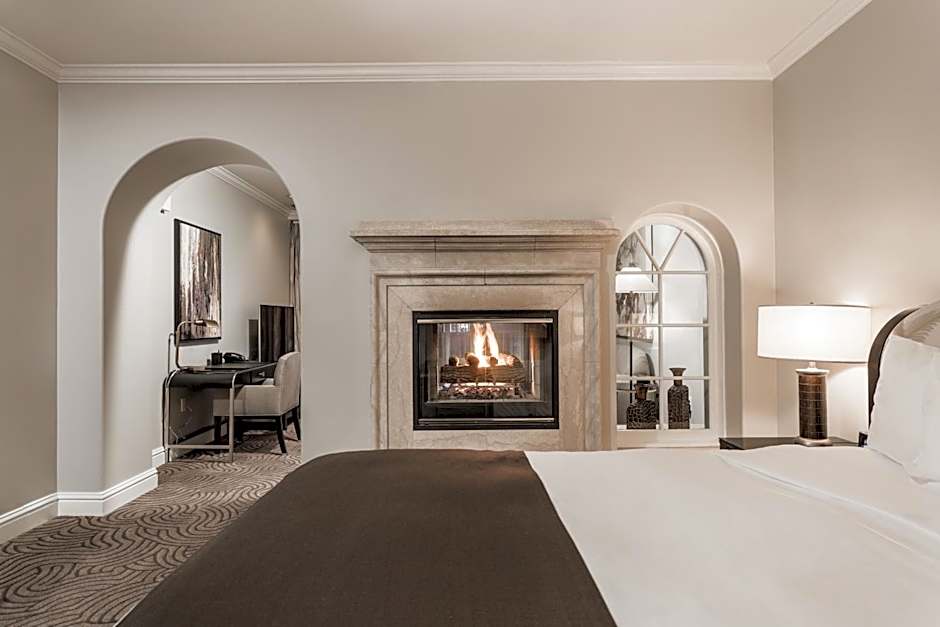 Featuring a fireplace and a marble lined bathroom, this luxury suite includes a flat-screen TV.