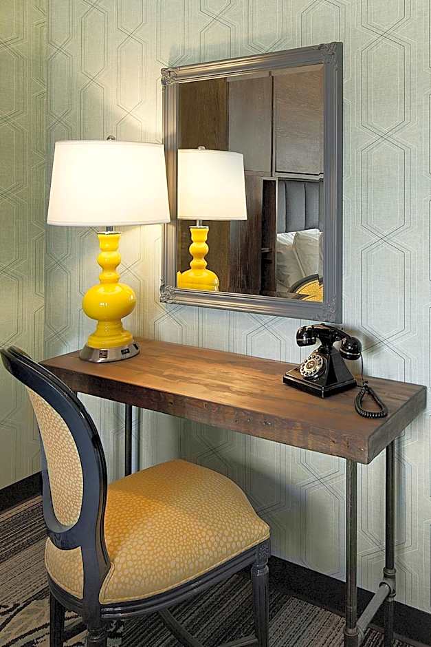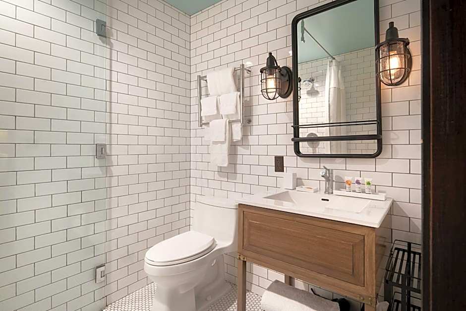 This double room features air conditioning, free bath amenities, retro-inspired telephones, work desk, 55" flat-screen TV, Access to communal kitchen, includes a twin-sized murphy bed.