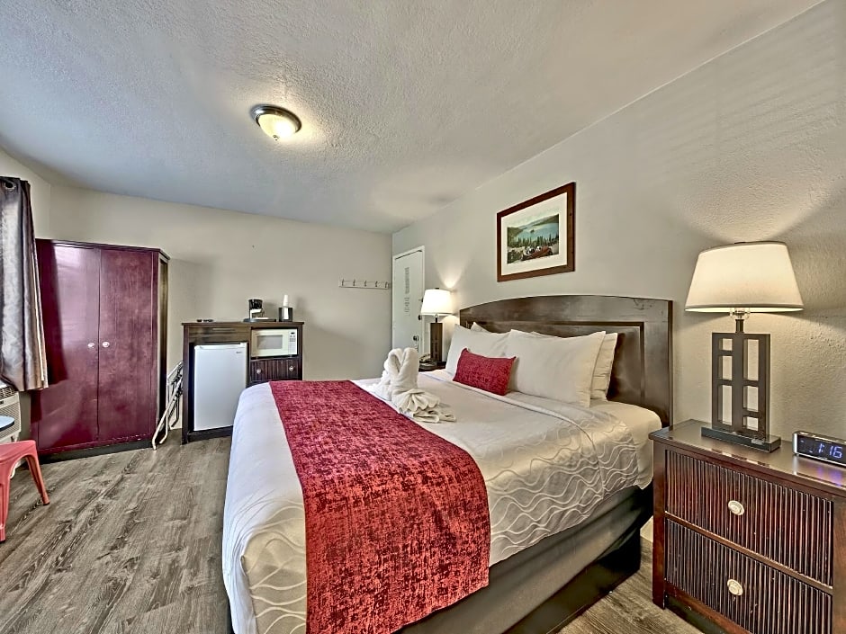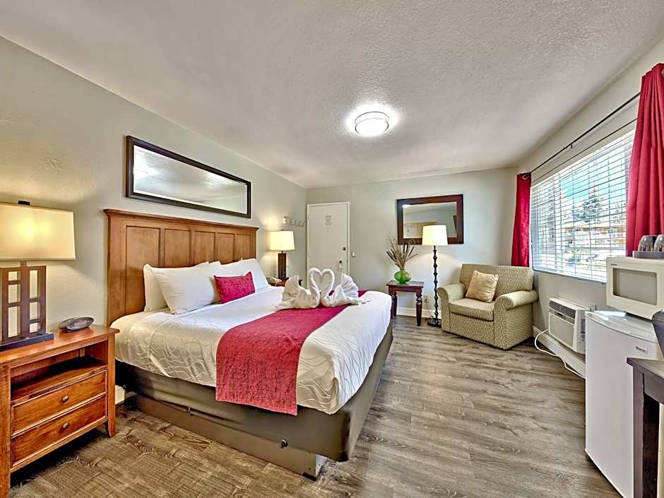 Room options include King Rooms, Rooms with Kitchenettes, Honeymoon Suites, and various Suite configurations. Some suites feature a Jetted Tub or Fireplace, and kitchen facilities are available in select rooms with a kitchen, kitchenette, and kitchenware. This mix makes it easy to tailor a Tahoe stay to a romantic escape, a family trip, or a cozy weekend retreat.