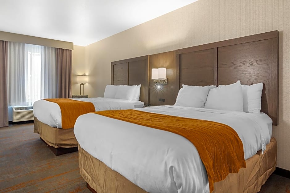 The Comfort Inn & Suites Brighton Denver NE Medical Center offers a variety of room options. There are Queen Rooms with Two Queen Beds, King Suites, and Suites with Two Queen Beds available. Smoking is not allowed in any of the rooms. The beds range from Queen size to King size, and the rooms can accommodate between 2 and 6 adults, with additional accommodation for children available in most rooms.