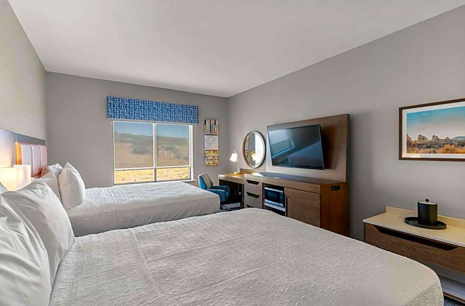 The Hampton Inn Colorado Springs Northeast offers a variety of room types, including King Rooms, King Studio Suites, Queen Rooms with Two Queen Beds, and accessible rooms such as the King Room - Hearing Accessible, and the Queen Room with Two Queen Beds - Hearing Accessible and Bath Tub - Mobility Accessible. Smoking is not allowed in any of the rooms. The rooms accommodate between 2 and 4 adults, with options for 1-3 children. The bed sizes range from King to Queen.