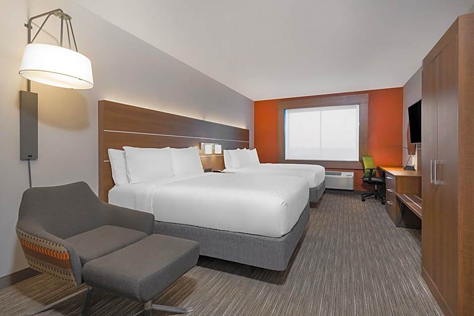 The Holiday Inn Express & Suites - Colorado Springs South I-25 offers a variety of room types including queen rooms with two queen beds, king rooms, and suites. All rooms are non-smoking and have a room size of 205 sqft. The occupancy ranges from 2 adults and 1 child to 4 adults and 3 children depending on the room type.