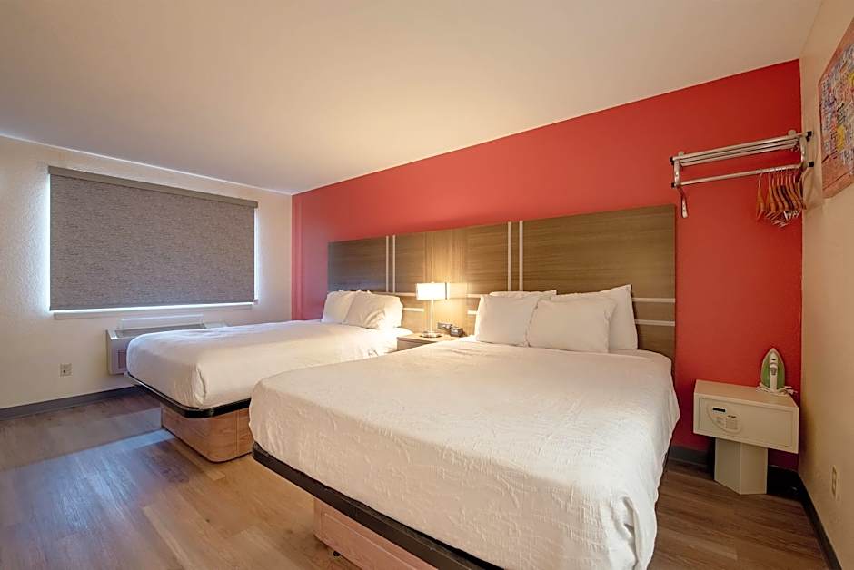 The Econo Lodge Cortez Mesa Verde offers deluxe rooms with two queen beds on the ground floor and queen rooms with two queen beds on the upper floor. Both types of rooms have a TwinDouble room type and do not allow smoking. The deluxe rooms are larger, with a size of 355 sqft, while the queen rooms have a size of 291 sqft. Both types of rooms accommodate 4 adults and 3 children and feature 2 queen size beds.