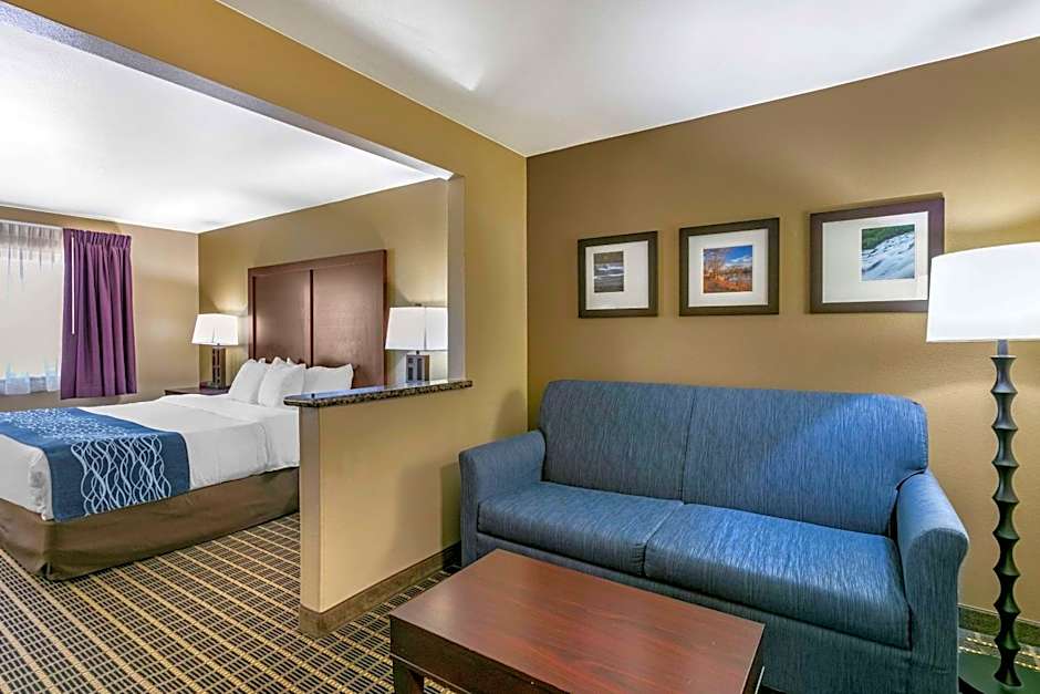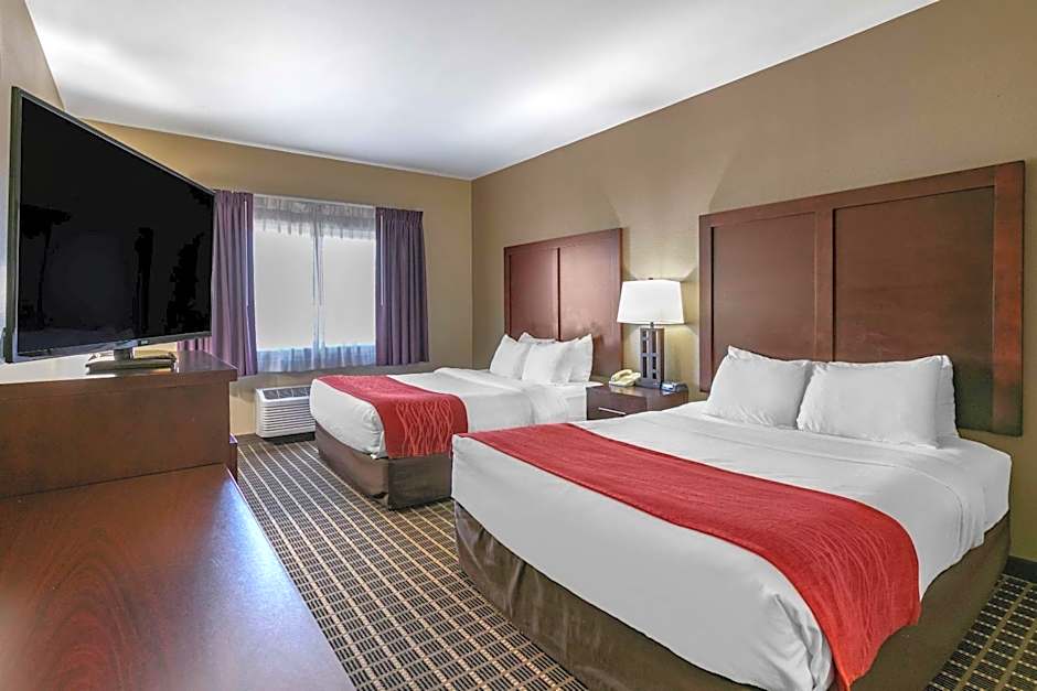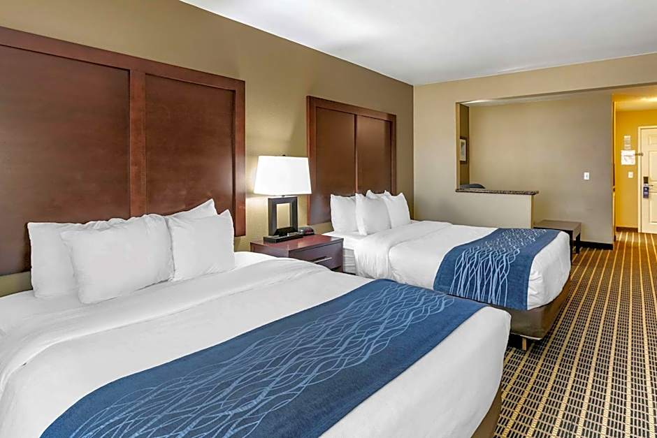 The Comfort Inn Fort Collins North offers a variety of room types including King Rooms, Queen Suites with Two Queen Beds and Mountain View, King Rooms with Roll-In Showers, King Suites, and Standard Queen Rooms with Two Queen Beds. All rooms are non-smoking and have a similar size of 291 sqft or 366 sqft. The rooms can accommodate a range of guests, from 2 adults and 1 child to 6 adults and 4 children. The beds in the rooms range from 1 King size bed to 2 Queen size beds, with some rooms also having a sofa bed.