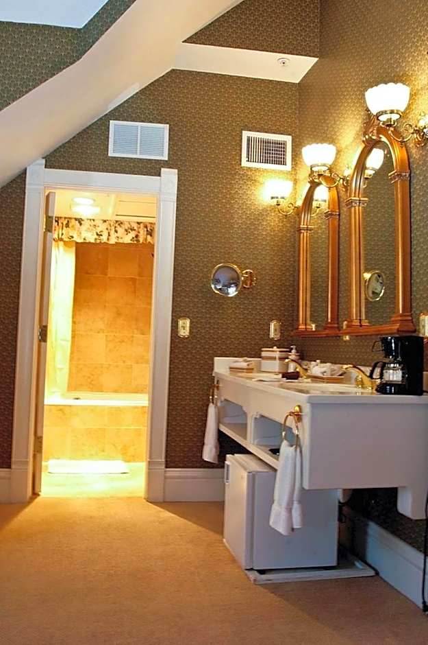 A gas fireplace and flat-screen cable TV are available in this suite. A small fridge is provided. A luxury private bathroom features heated toilet seats.