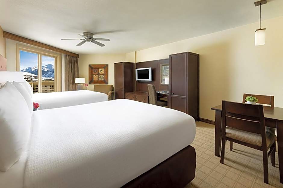 Room choices run from slopeside and valley-view configurations to palatial suites. Highlights include the Presidential Suite, a two-bedroom retreat at about 1,800 square feet; the Deluxe Family suite with two queens and a king at 972 square feet; and various slopeside and valley-view options such as the Slopeside Suite (one bedroom) with slopeside view, and the Slopeside Junior Suite with a king bed and sofa bed. For flexible stays, options like the Deluxe, King; Deluxe, 2 Queen; Queen Room with Valley View or Slopeside View, and other combinations offer comfortable layouts ranging roughly from 484 to 800-plus square feet.