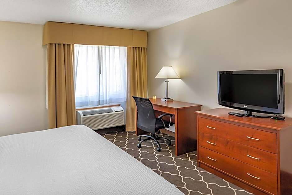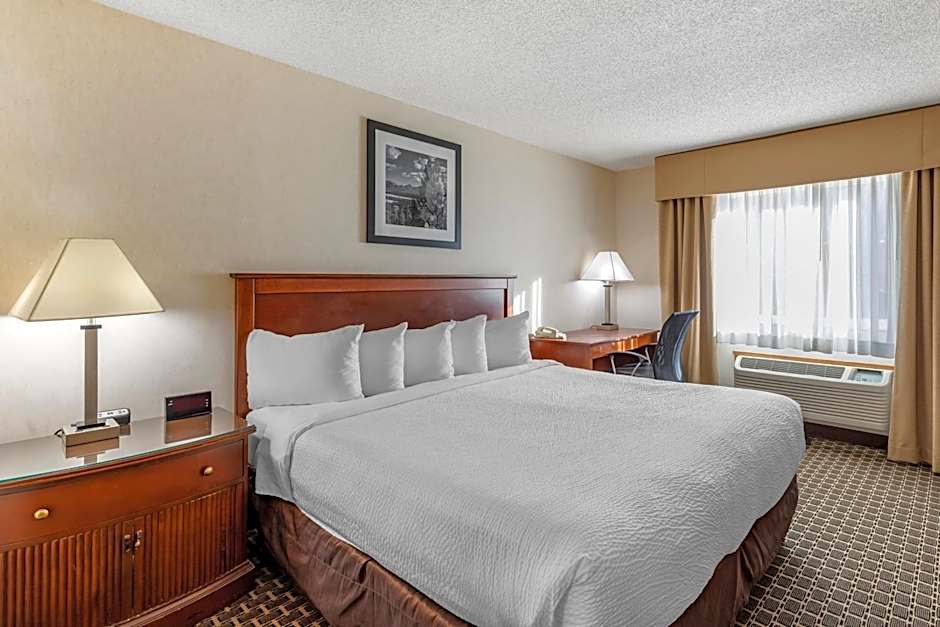 The hotel offers a variety of room types including King Rooms, Queen Rooms with Two Queen Beds, King Suites, and rooms with accessibility features. All rooms are non-smoking. The King Rooms can accommodate 2 adults and 1 child, while the Queen Rooms with Two Queen Beds can accommodate 4 adults and 3 children. The King Suites can accommodate 4 adults and 3 children. The room size for all rooms is 280 sqft, except for the King Suite which is 560 sqft. The King Room with Whirlpool and the King Suite both have a King size bed, while the other rooms have either 1 or 2 Queen size beds.