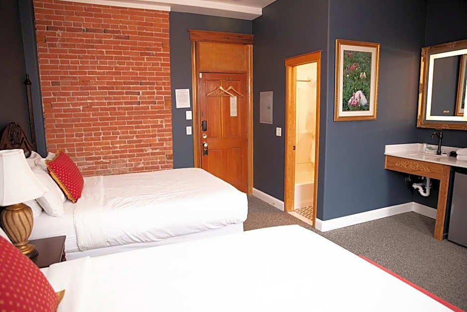 This corner room is located on an upper level and features a microwave, small refrigerator and coffee maker. A flat-screen TV with satellite channels is included. A private bathroom is provided. Vaulted ceilings and brick arched windows are included as well. Bottled water and room service are offered. Complimentary WiFi is included.