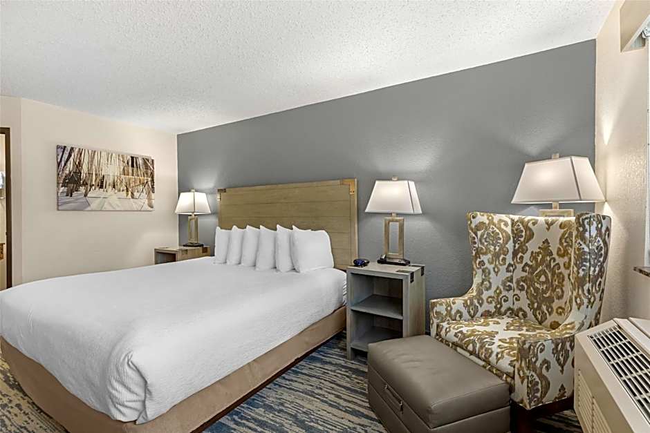 The Best Western Alpenglo Lodge offers a variety of room options. They have King Rooms with Disability Access, Deluxe Queen Rooms with Two Queen Beds, Deluxe King Rooms, Queen Rooms with Two Queen Beds and Disability Access, Deluxe Queen Rooms with Two Queen Beds and Mountain View, Deluxe King Rooms with Mountain View, and Queen Rooms with Two Queen Beds that are Pet Friendly. None of the rooms allow smoking. The rooms accommodate either 2 adults and 1 child or 4 adults and 3 children, and the bed sizes range from King to Queen.