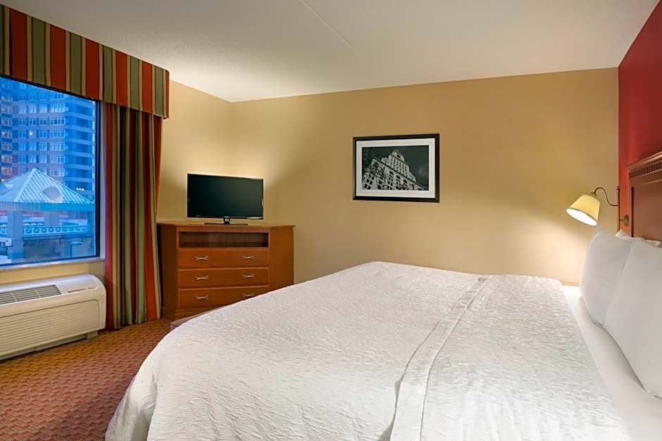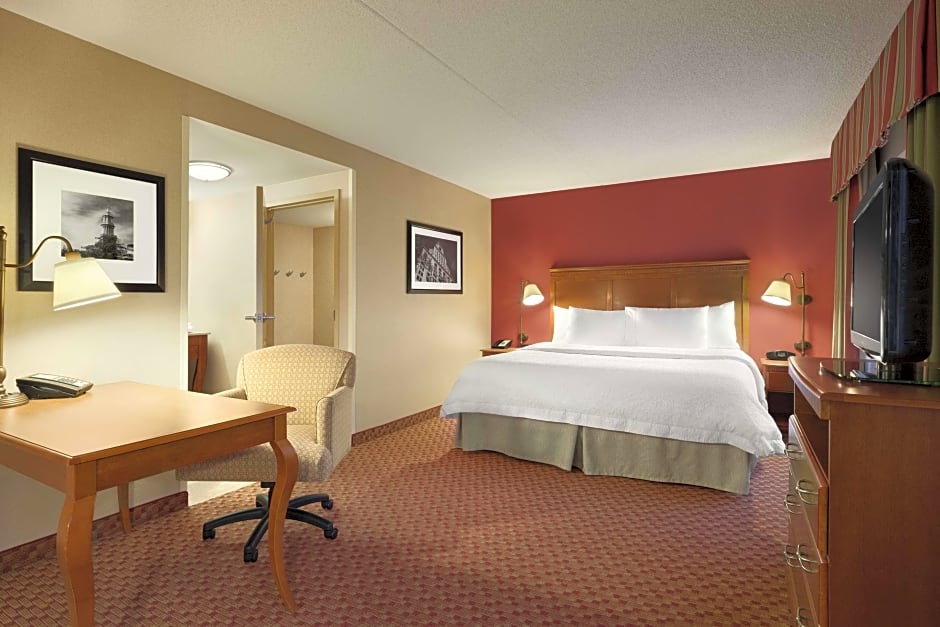 The Hampton Inn & Suites East Hartford offers a variety of room types including King Studios, Queen Studios, and rooms with two Queen beds. All rooms are non-smoking, and the majority accommodate 4 adults and 3 children. Bed sizes range from King to Queen, and there are options for accessible and hearing accessible rooms.