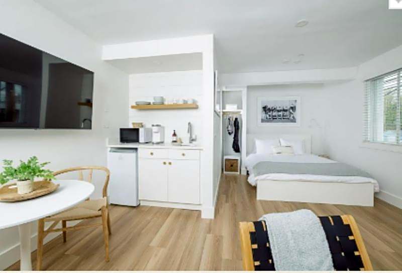 Featured amenities include pet friendly (extra charges), a private beach area (free), private parking (free), wifi (free), a streaming service like Netflix, air conditioning (free), beach access, private entrance, parking on site (free), non-smoking rooms, kitchenware, kitchenette, and free toiletries.