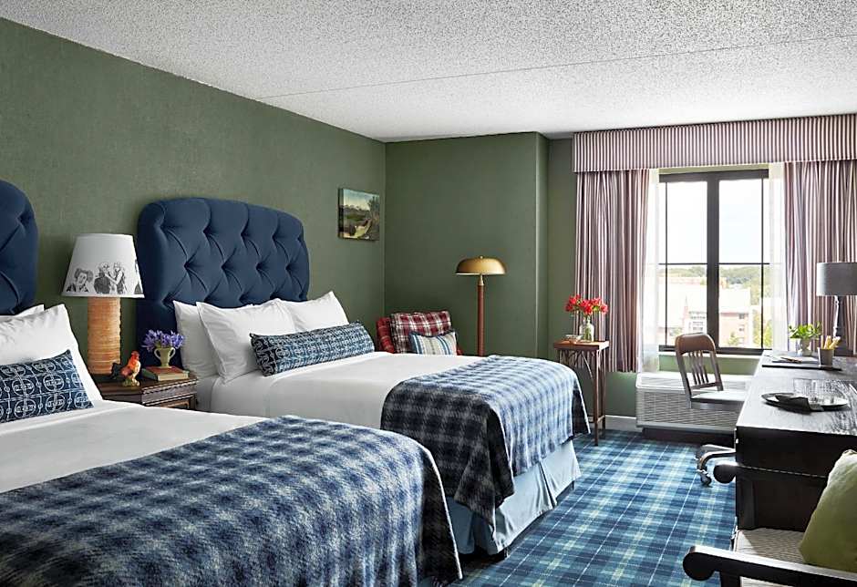 At the Graduate Storrs hotel, there are Queen Rooms with Two Queen Beds, King Rooms, and Suites available. All rooms are non-smoking and vary in size, ranging from 323 to 452 sqft. The Queen Rooms and King Rooms can accommodate up to 4 adults and 3 children, while the Suites can accommodate up to 3 adults. The bed sizes include Queen size beds, King size beds, and some Suites also have a Sofa Bed.