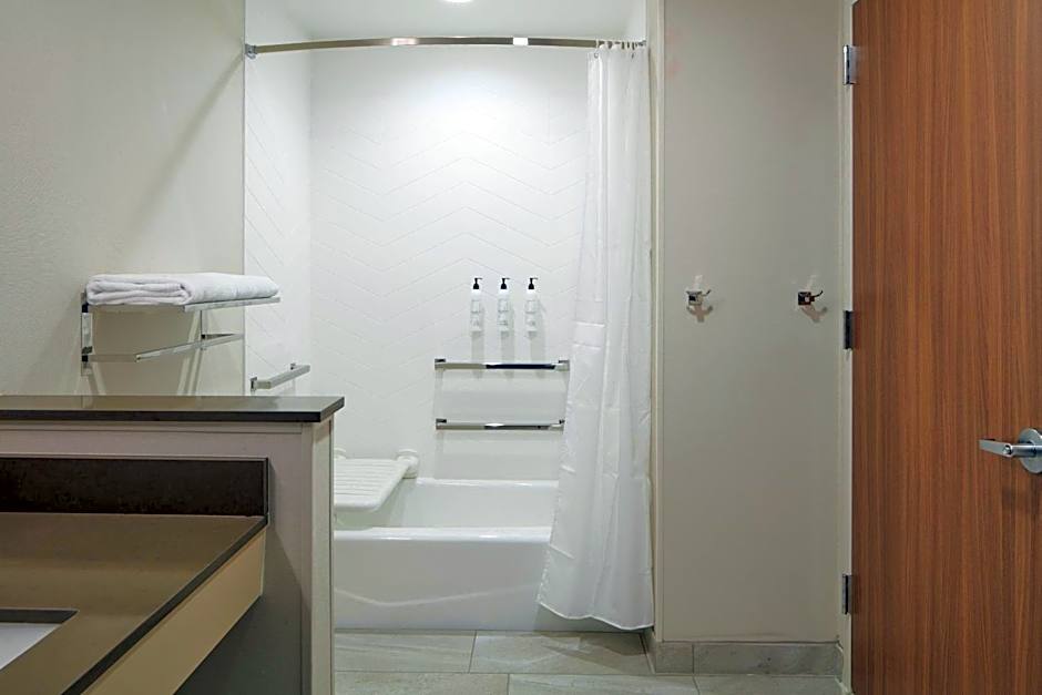The hotel offers Queen Rooms and King Rooms, both of which can accommodate 2 adults. The Queen Rooms have two Queen size beds, while the King Rooms have one King size bed. None of the rooms allow smoking. There is also a Queen Room with Two Queen Beds that is mobility and hearing accessible with a tub, and a King Room with a roll-in shower that is also mobility and hearing accessible.