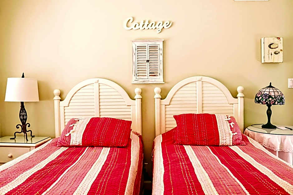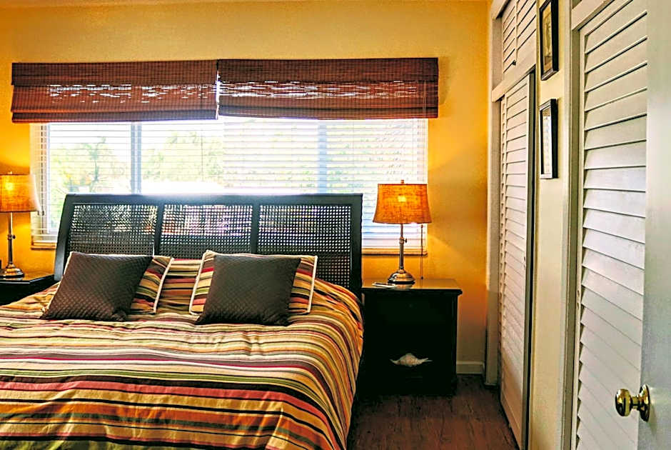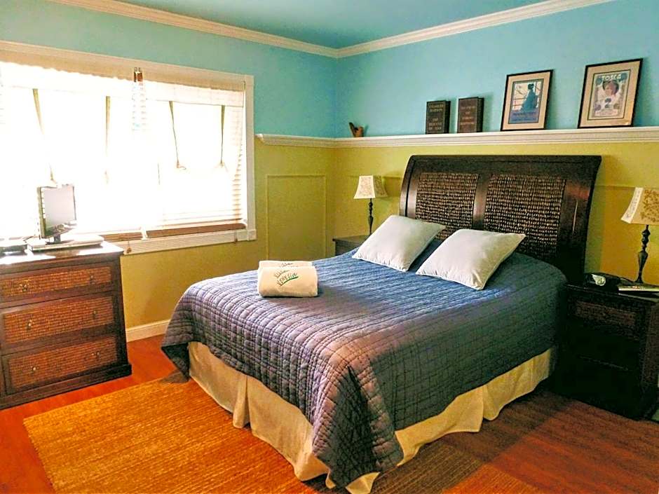 Located on the 1st level, this room offers a garden view and private entrance. It includes a kitchenette, complete with a small refrigerator, a microwave, coffee maker, and a toaster. A private bathroom and walk-in closet are included.