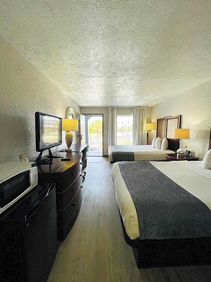 Days Inn by Wyndham Fort Walton Beach offers various room types including Queen Rooms with Two Queen Beds (non-smoking and smoking options available), Standard King Rooms (smoking allowed), and King Rooms (non-smoking, accessible options available). Accommodations range from double to family occupancy with bed sizes typically being Queen. Each room accommodates either 2 adults and 1 child or 4 adults and 3 children, with some rooms catering to accessibility needs.