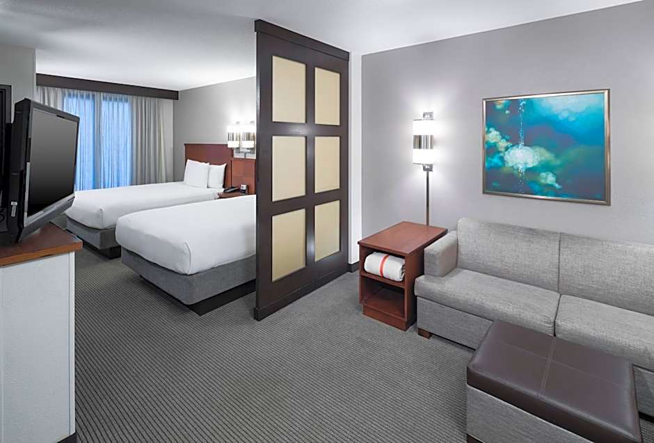 The Hyatt Place Jacksonville Airport offers a variety of family and quadruple rooms. The family rooms feature two queen beds and a sofa bed, while the quadruple rooms have a king bed and a sofa bed. All rooms are non-smoking and have a size of 452 sqft. The occupancy ranges from 4 to 6 adults and can accommodate up to 4 children.