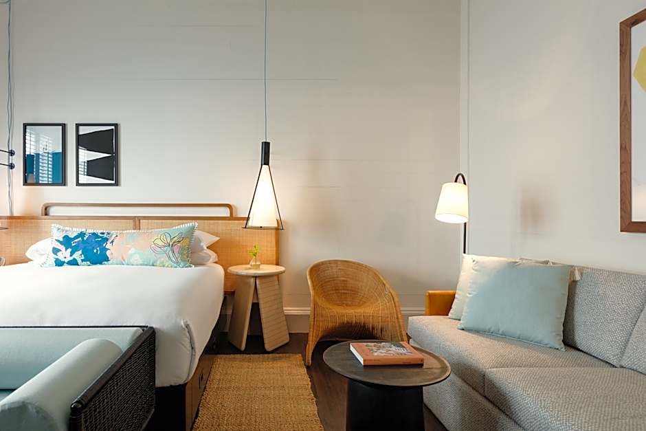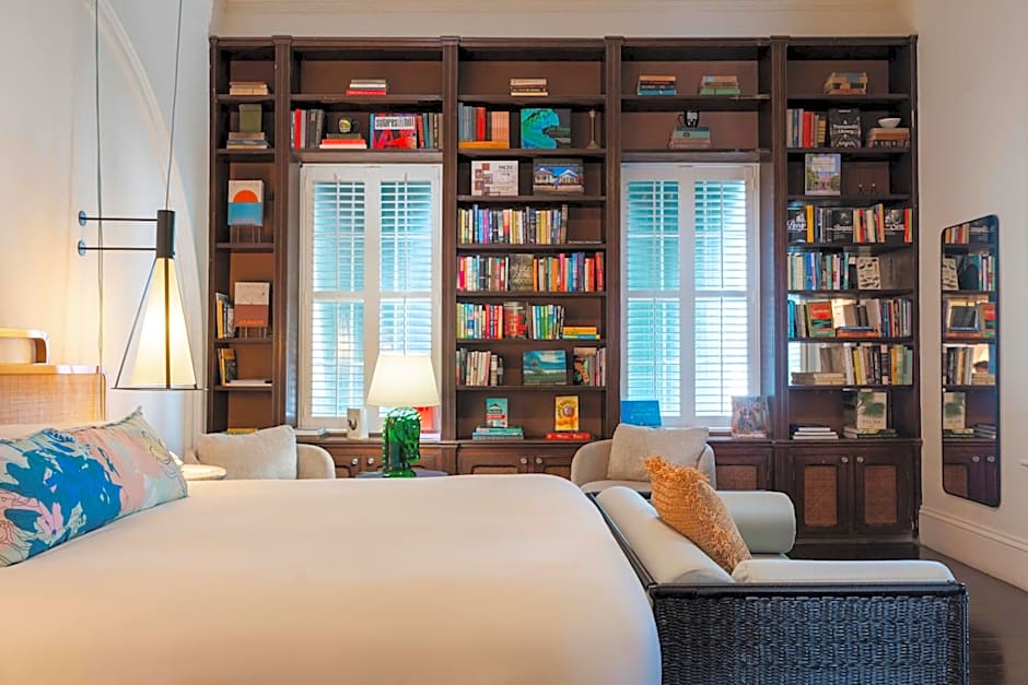 The Kimpton Ridley House-Adult Only hotel offers a variety of room options. These include the Essential King Room, Room Selected at Check-In, Premium King Room with Sofa Bed, Essential King Room with Patio, One-Bedroom King Suite, and the King Room with Mobility Accessible Roll-In Shower. All rooms have a king-size bed, except for the Premium King Room with Sofa Bed, which also has a sofa bed for additional guests. Smoking is not allowed in any of the rooms.
