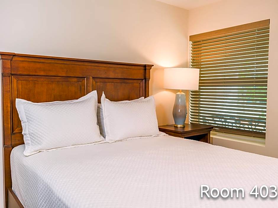Room options include Suite, 1 Bedroom; Suite, 2 Bedrooms; Studio, Queen Bed; and Studio, King Bed, all non-smoking. This range provides choices for travelers seeking either extra space or a cozy studio, while maintaining a relaxed, smoke-free setting.