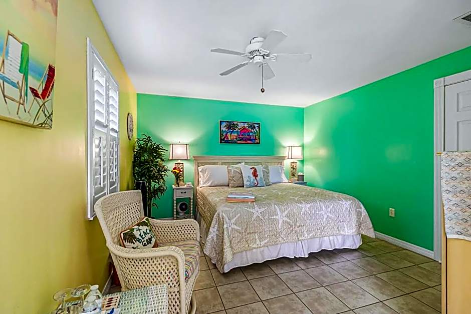 Also known as the South Beach Room, this room features an ocean view, shower with 2 shower heads, private parking area, and shared patio.