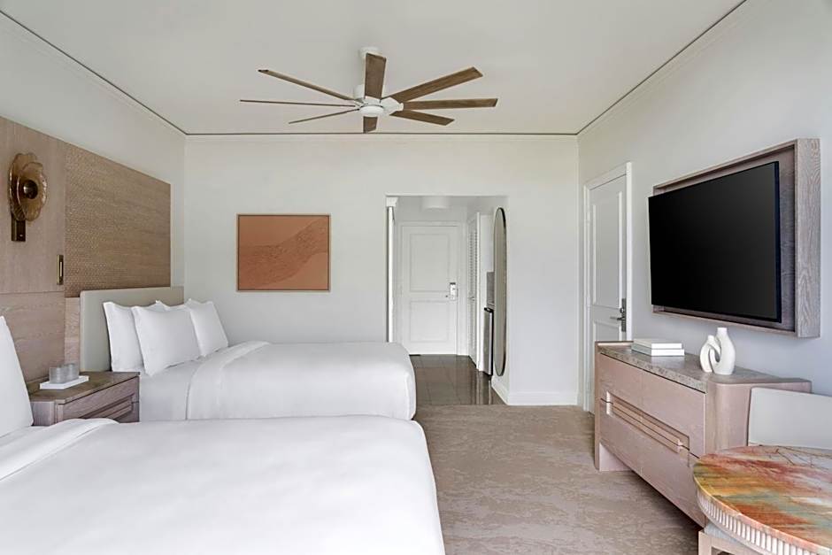 The Ritz Carlton Key Biscayne, Miami offers a variety of rooms including Resort View with Two Double Beds, Ocean Front View One Bedroom Suite, Studio with Two Double Beds and Ocean View, Double Room with Two Double Beds and Bay View, Oceanfront King Room - Club Lounge Access, Studio with Two Double Beds, and Oceanfront Double Room with Two Double Beds - Club Lounge Access. All rooms have a non-smoking policy. The rooms accommodate 4 adults and 3 children, with bed options ranging from double beds to king size beds and sofa beds.