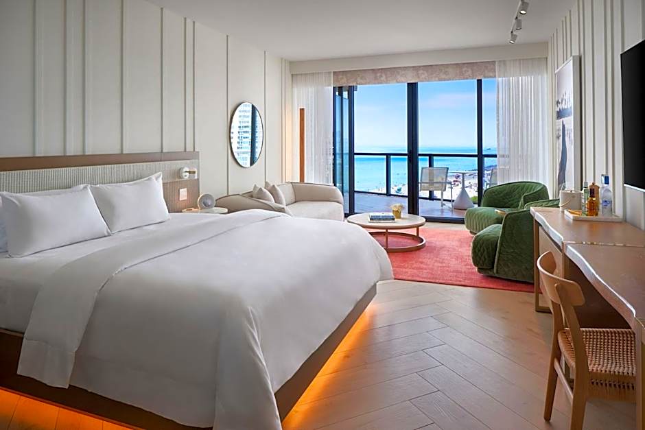 Σουίτα, 1 Υπνοδωμάτιο, Κρεβάτι King, Γωνιακό, Μπαλκόνι, Πάνω Στην Παραλία