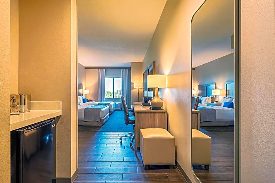 Orlando’s getaway spot continues with an adults-only, heated outdoor pool that shines year-round, set in a lively outdoor space perfect for soaking up the Florida sun. A complimentary shuttle makes trips to nearby attractions a breeze, and free Wi-Fi keeps plans and memories connected. A 24-hour front desk is ready to help with questions or quick needs, ensuring smooth arrivals and departures. The on-site fitness center stays free for staying active between adventures.