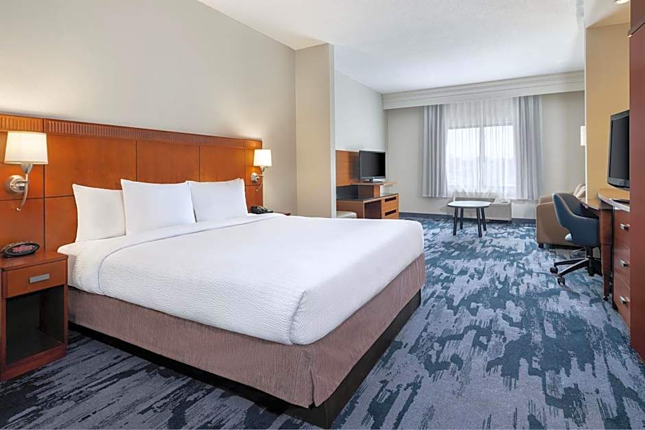 The Fairfield Inn & Suites Orlando Ocoee offers guest rooms with 1 King bed and a sofa bed or just 1 King bed. The rooms can accommodate either 2 adults and 1 child or 3 adults and 2 children. Smoking is not allowed in any of the rooms. The rooms vary in size, with the guest room with a sofa bed being slightly larger at 323 sqft compared to the guest room with just a King bed at 301 sqft.