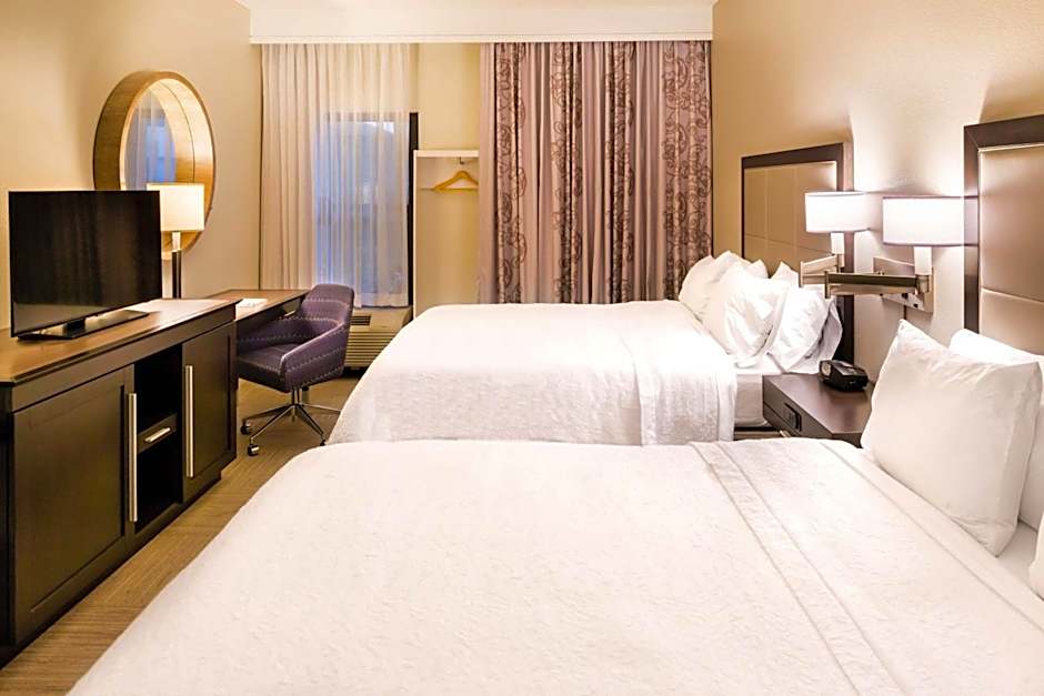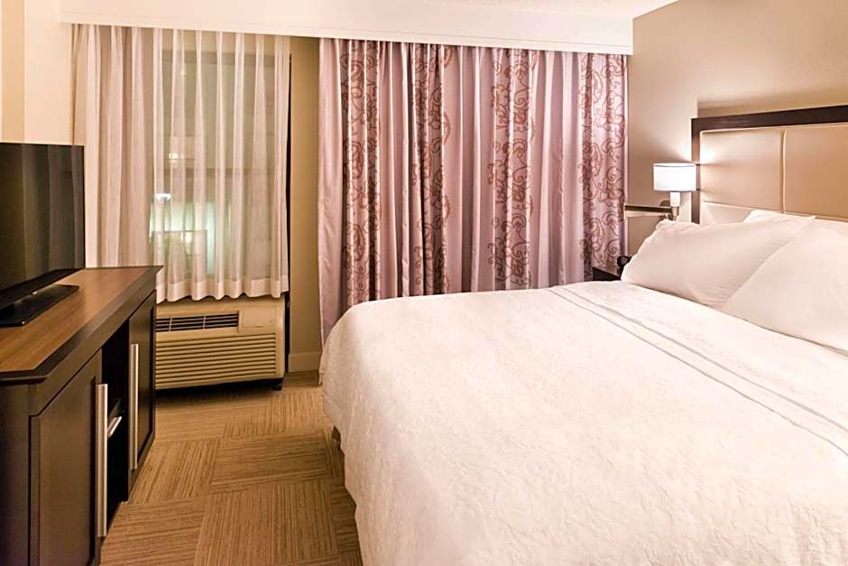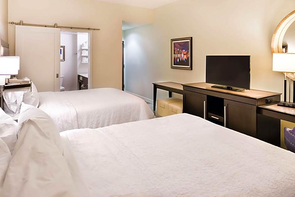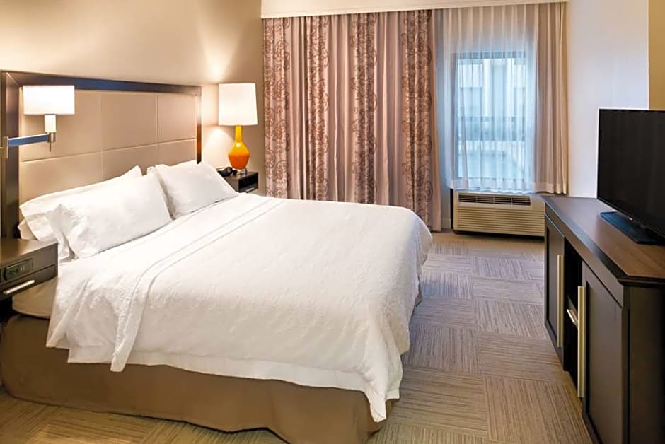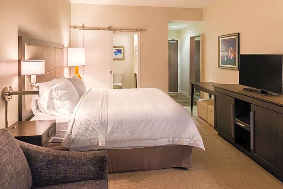 Kitchen, sofa bed, large desk, free WiFi, 32-inch LCD flat-screen HDTV. Treat yourself to this spacious two-room suite, featuring a comfortable king-sized bed and sofa bed. Surf the web with our free WiFi access, or use it to help you get some work done at the large desk. Stretch out on the sofa and watch premium HD channels on the 32-inch LCD TV. Enjoy a peaceful night's sleep in the clean and fresh Hampton bed®. Other amenities in this suite include weekday newspaper delivery, fluffy towels, and a coffee machine.