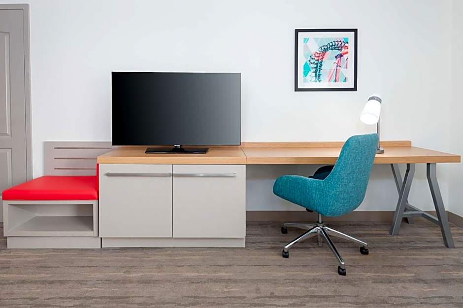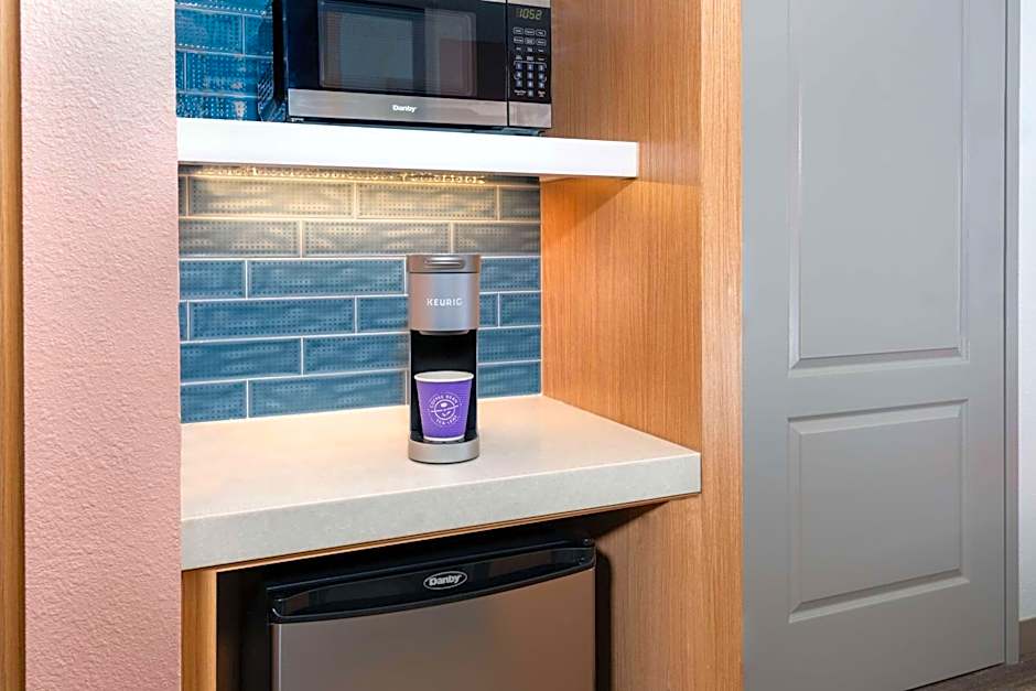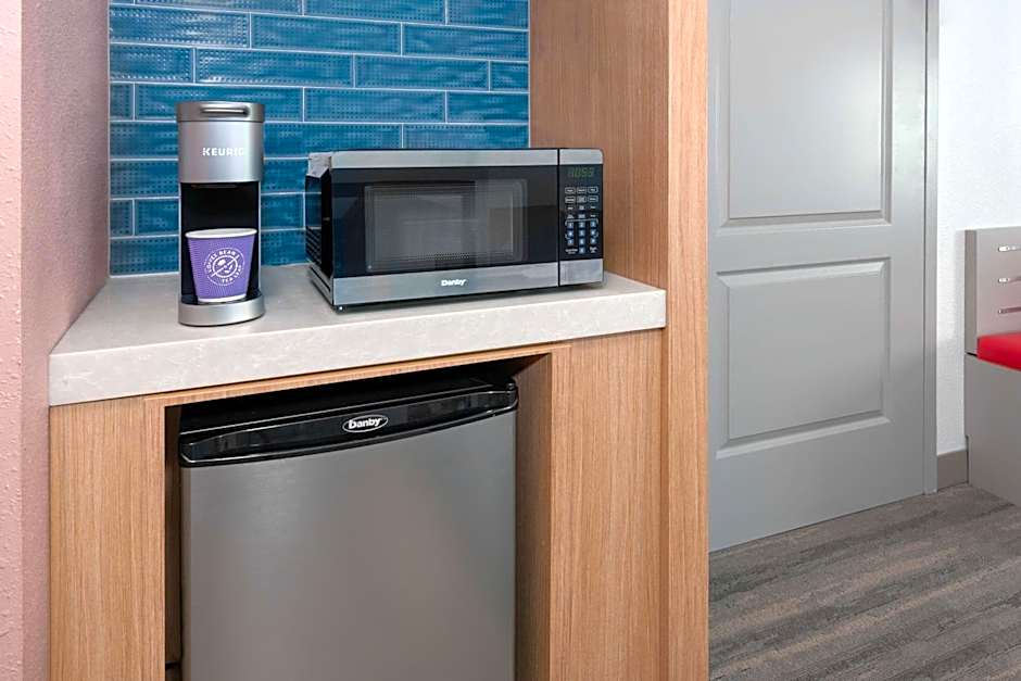 This room offers a mini fridge, microwave, work area and coffeemaker.