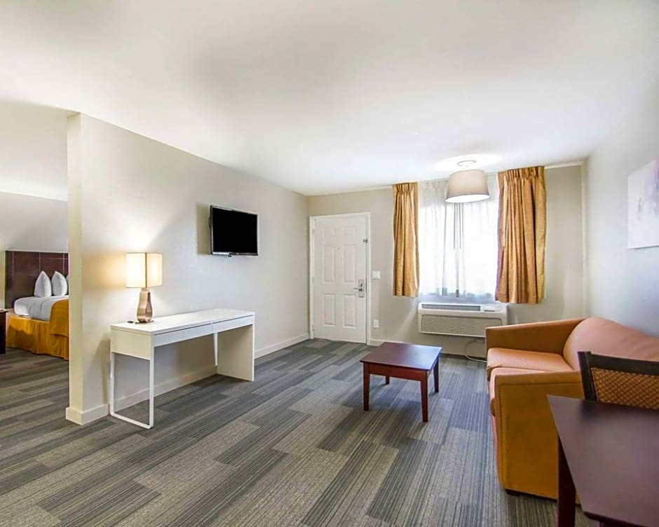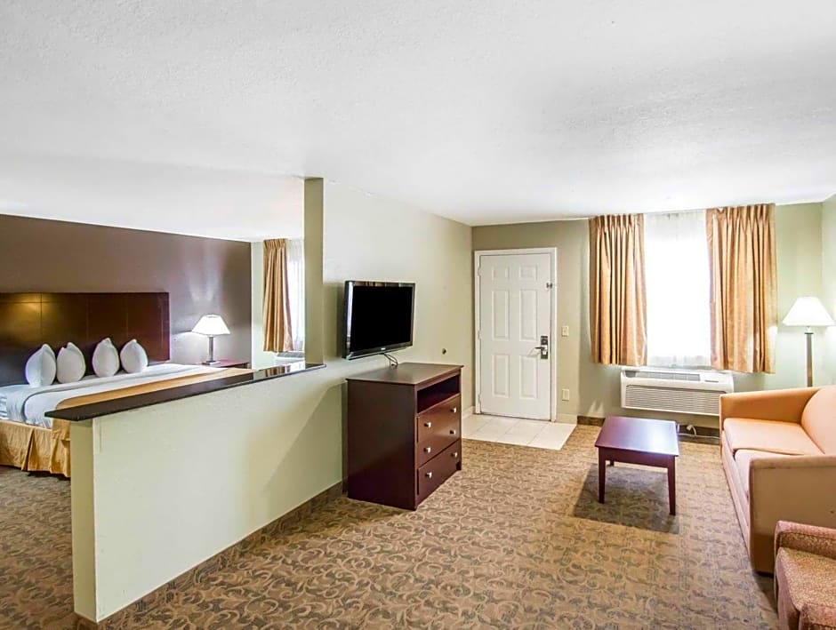 The Quality Inn & Suites By the Parks hotel offers a variety of rooms including suites and double rooms. The suites have either one king bed or two double beds, with a sofa bed, and can accommodate between 3 and 4 adults, along with 2 children. The non-smoking rooms have bed options of either a king bed or two queen beds, with a maximum occupancy of either 2 or 4 adults, along with 2 children. There is also an accessible non-smoking room with a king bed, accommodating 2 adults.