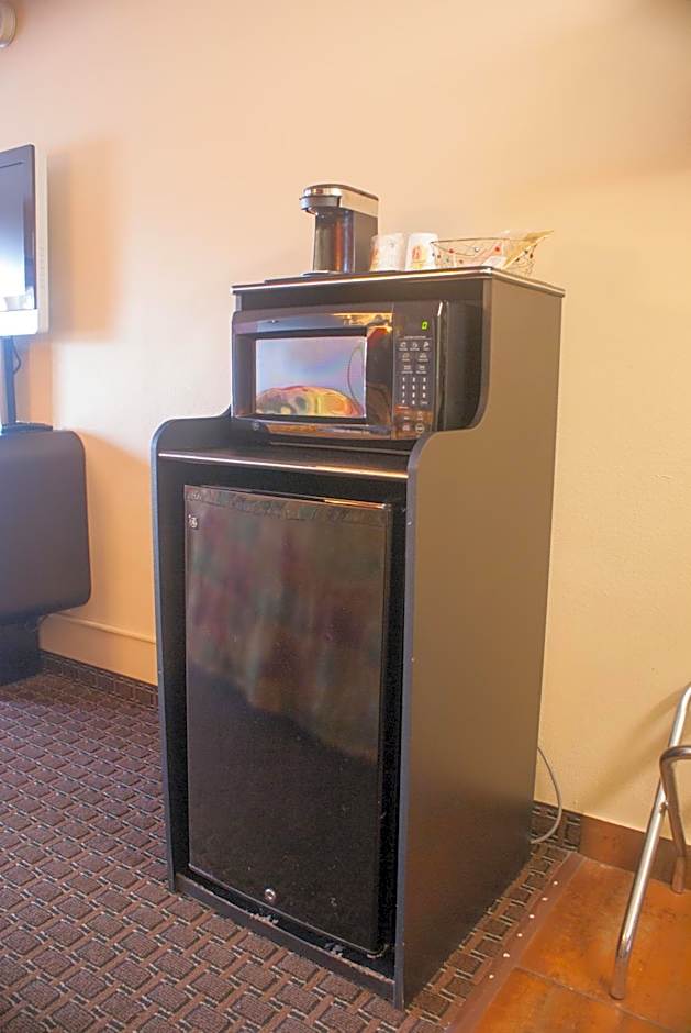 This room features a microwave, refrigerator, and a flat-screen TV with cable.