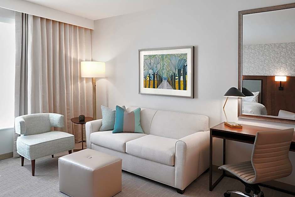 The hotel offers various room types including the Studio with 1 King and Sofa bed, Studio with 2 Queens, 1 Bedroom Suite with 1 King and Sofa bed, King Studio with Sofa Bed - Hearing Accessible, 2 Bedroom Suite, and Studio with Two Queen Beds - Hearing Accessible. All rooms are non-smoking and have a size of 301 sqft. Occupancy ranges from 3 adults and 2 children to 5 adults and 4 children, depending on the room type. Bed sizes include Queen and Double beds.