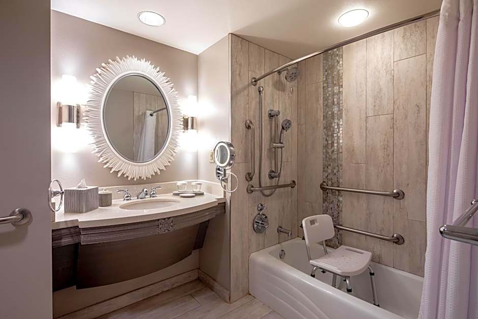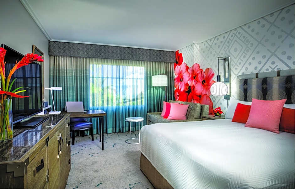 Guests can also enjoy a range of dining options at the hotel. The Islands Dining Room offers American and Asian cuisine, while Jake's American Bar provides a family-friendly atmosphere and American cuisine. The Orchid Court Lounge and Sushi Bar offers sushi in a family-friendly ambiance.