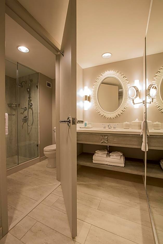 Guests at Universal's Loews Royal Pacific Resort can enjoy a variety of leisure amenities during their stay. They can relax and cool off in the outdoor swimming pool, which features a waterslide for added fun. There is also a hot tub/Jacuzzi and a sauna available for guests to unwind and recharge.