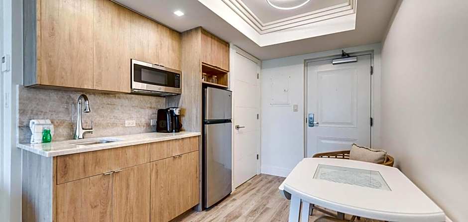 Located poolside with partial views of the Gulf of Mexico, this suite includes a balcony, separate living room, and a 42-inch flat-screen TV. A small refrigerator and microwave are provided.