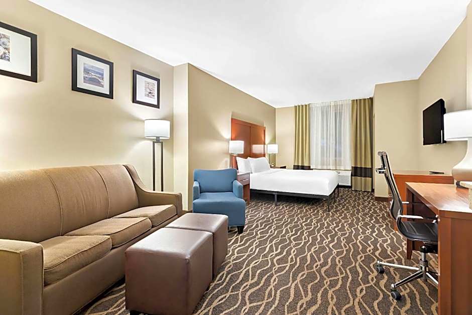 The Comfort Suites Tampa Airport North offers various room options including Queen Suites, King Suites, and Queen Suites with Two Queen Beds. All rooms are non-smoking and range in size from 344 sqft to 506 sqft. The occupancy of the rooms can accommodate between 2 to 6 adults, along with 1 to 2 children. The bed sizes include Queen, King, and Sofa Bed options.
