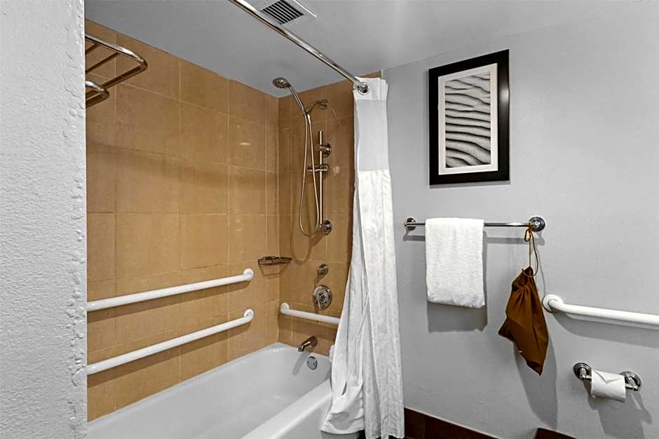 Mobility accessible shower, complimentary WiFi, balcony It starts with a warm chocolate chip cookie, a sign of all the little things to come. Select this spacious room for mobility accessible features including a roll-in shower. Catch up with work at the large desk with executive chair and printing capabilities Unwind with a 40-inch LCD TV and a DoubleTree alarm clock with MP3 connection Stay connected with complimentary WiFi This room also features convenient and comforting amenities such as a balcony, coffeemaker, mini-refrigerator, king-sized Sweet Dreams bed, and refreshing bath products. Any corresponding photo may not reflect the specific accessible room type or room feature.