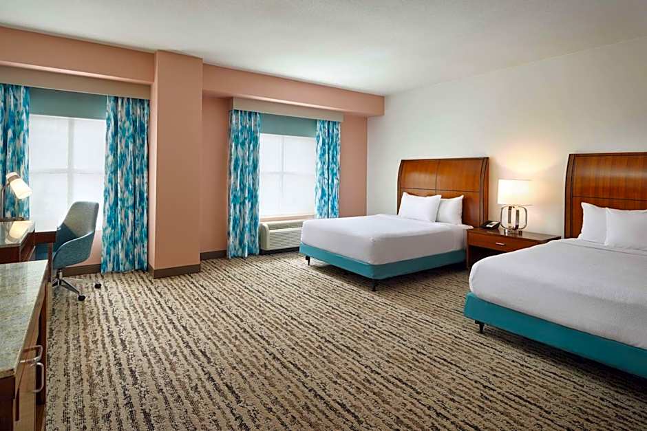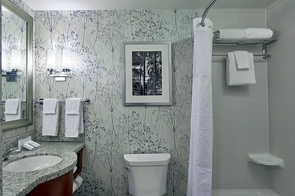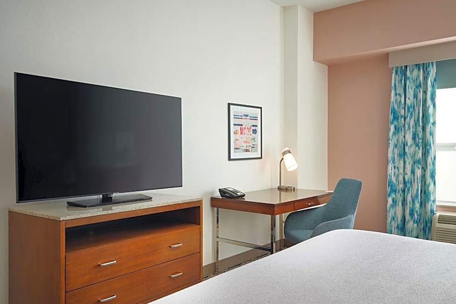 The Hilton Garden Inn Atlanta Midtown offers a variety of room types including King Rooms with Peloton, Junior King Suites, King Rooms with Bath Tub that are accessible and hearing accessible, Junior Suites, Queen Rooms with Two Queen Beds and accessible Bath Tub, Queen Rooms with Two Queen Beds, and King Rooms. All rooms are non-smoking and range in size from 205 sqft to 484 sqft. The rooms can accommodate between 2 to 6 adults and 1 to 4 children, depending on the room type.