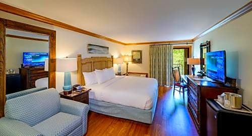 Also known as the Legacy Lodge King Accessible Room, this room offers handicap-accessible amenities, including an adapted bathroom with safety grab bars.
