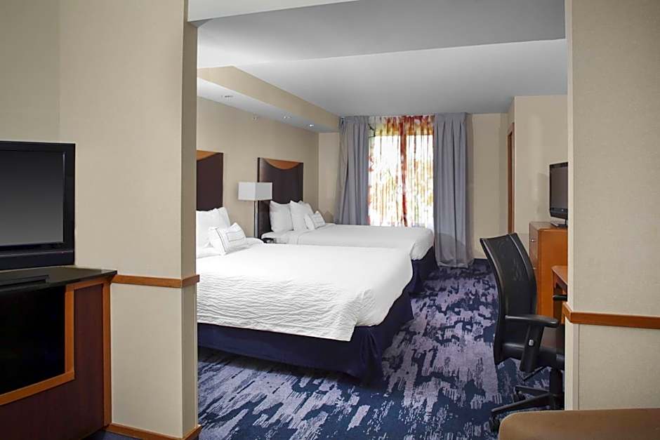 The Fairfield Inn & Suites Milledgeville offers three types of rooms: King Studio with Sofa Bed, Queen Room with Two Queen Beds, and King Room. Smoking is not allowed in any of the rooms. The King Studio with Sofa Bed can accommodate 3 adults and 2 children, while the Queen Room with Two Queen Beds can accommodate 4 adults and 3 children. The King Room can accommodate 2 adults and 1 child. Bed sizes include king size beds and sofa beds.