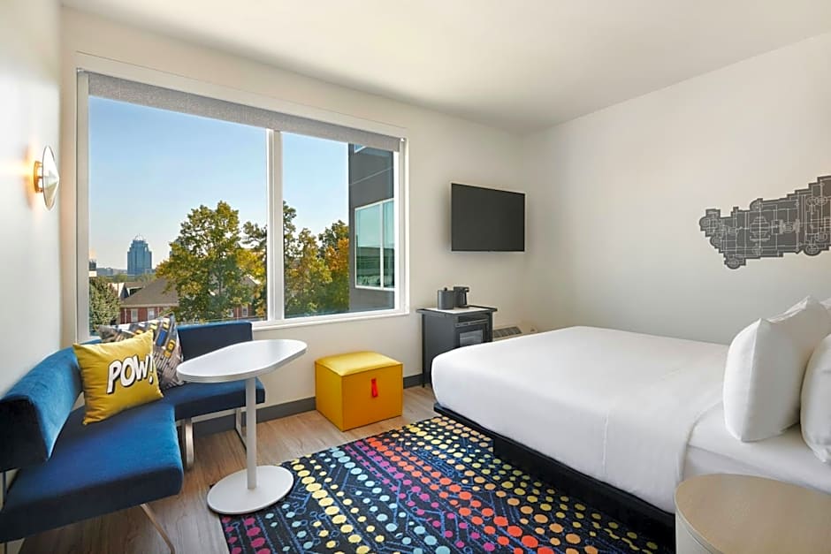 The Aloft Atlanta Perimeter Center hotel offers various types of rooms including Larger Queen Rooms with Two Queen Beds, Standard Queen Rooms with Two Queen Beds, Savvy King Rooms, Standard Queen Rooms with Two Queen Beds and City View, King Rooms with City View, Standard King Rooms, and King Rooms with Roll-in Shower - Mobility Accessible. All rooms have a non-smoking policy and the Double rooms have a capacity of accommodating 4 adults. The bed sizes range from Queen to King. Room sizes vary from 291 sqft to 388 sqft.