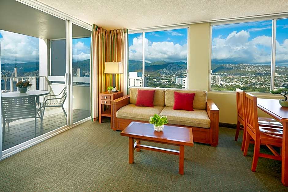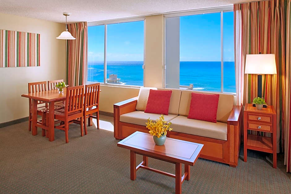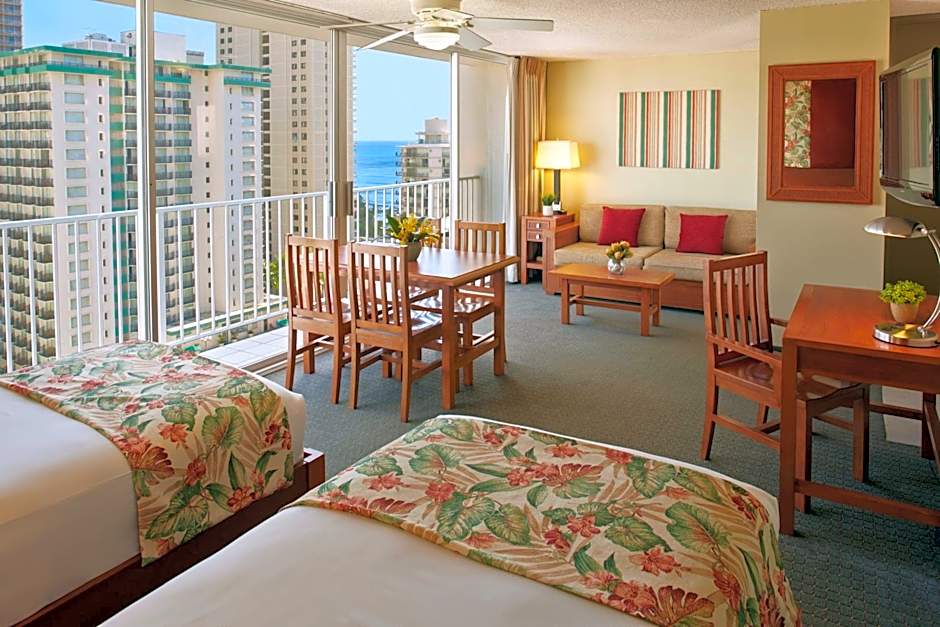 Nestled just 3,3mi from the vibrant heart of Honolulu, the Pacific Monarch offers a delightful escape in the sunny haven of Hawaii. This charming 3-star apart hotel on 2427 Kuhio Avenue combines the comfort of spacious suites with the convenience of amenities like free Wi-Fi, a soothing outdoor pool, and a relaxing hot tub—perfect for unwinding after a day of island adventures. Whether you're lounging on the sun deck or enjoying spectacular landmark views from your private balcony, every moment here feels like a mini vacation.